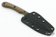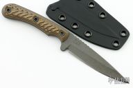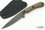The sparrow is a compact bird and trout style fixed blade that excels in a concealed carry or everyday carry role for your go-to knife needs. It’s a knife that you can pull out in the park to cut your apple without anyone being concerned that you have a knife. It blends in well in both urban and rural settings and is a great companion for any adventure. The classic drop point blade has a tungsten Cerakote finish for corrosion and glare resistance. The beveled and contoured G10 grips features diagonal texturing for a not too aggressive but secure grip. Comes with molded kydex scabbard. Shows some light wear, great condition otherwise.