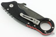 It features a CTS-XHP tanto blade, "Emerson Wave" feature for ease of opening, and a reversible pocket clip for left hand carry with black and red G10 scales provide for a sure grip.