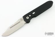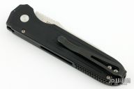 This Invictus MIL-LE 024.100 Auto by Prometheus Design Werx features a tumble finished blade with notched thumbrest and fullers. The handle has a black aluminum frame with a stainless steel tip up clip, lanyard hole at the butt. Push button and safety. Has some light scuffs and scratches, good condition otherwise.
