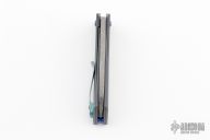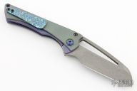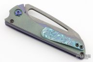 This Nurse flipper by Gavko Knives features a stonewash finished blade with textured spine and thumbhole. The handle has a  blasted and anodized titanium frame with timascus tip up clip, anodized pivot, black screws. Rides on bearings, nice detent, lockup and blade seating. Comes with a zippered case. Excellent condition.