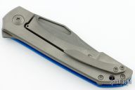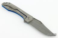 This Un-Bo flipper from Simeon Custom Knives features an acid washed blade with flipper and milled thumbhole. The handle has a G10 and Titanium frame with a titanium tip up pocket clip. Comes with a padded case and COA dated OCT 2023.  Rides on bearings, nice detent, lockup and blade seating. New from maker!