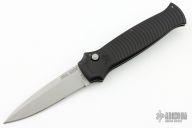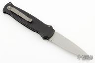 The Bodyguard side opening auto by Piranha Knives features a bead blast finished bayonet blade, ribbed aircraft aluminum handle, and titanium pocket clip. Has a couple light scuffs, otherwise great condition.