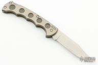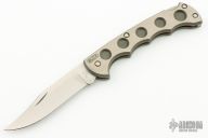 This knife by Buck Knives features a satin finished clip point blade with nail nick. The handle has a two-tone titanium frame. Has some light scuffs and scratches, great user condition otherwise.