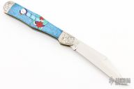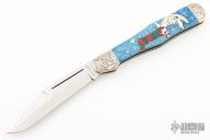 This Ka-Bar slipjoint has a mirror polished blade with nail nick. The handle has engraved nickel silver bolsters, custom "Man in the Moon" Christmas covers, brass liners and a stainless steel spring. Excellent condition.