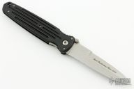 This Applegate Fairbairn Combat Folder by Gerber has a bead blasted stainless steel partially serrated spear point blade with dual thumb studs and false top edge. Handle is black contoured polymer with single stainless steel liner and lanyard hole. Has a couple light scuffs and scratches, otherwise excellent condition.