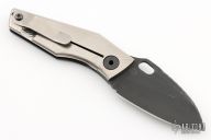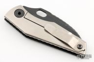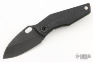 This SJ75 Baby Huey framelock folder by Strider Knives has a black finished blade and a black G-10 and milled titanium frame with tip up titanium clip. File work on blade spine and inner edges of frame along the spine. Has a couple very light scuffs, otherwise excellent condition. Nice detent, lockup and blade seating.