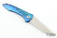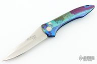 This Auto by TiNives features a high polished spear point blade and multi-color aluminum handle with tip down clip. Excellent condition.