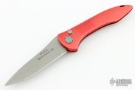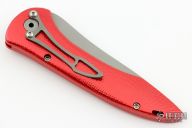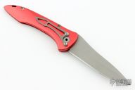 The Tactical Hybrid auto by Tinives features a bead blasted spear point style blade. The handle is composed of textured red aluminum and a tip down titanium pocket clip. Excellent Condition.
