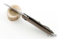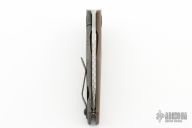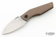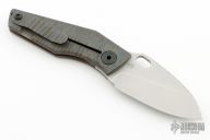 This SJ75 Baby Huey framelock folder by Strider Knives has a tumble finished blade and a coyote brown G-10 and an anodized titanium frame with tip up titanium clip. File work on blade spine and inner edges of frame along the spine.  Nice detent, lockup and blade seating.  Excellent Condition.