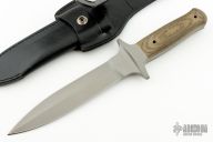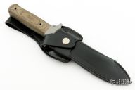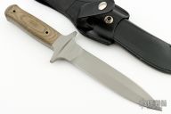 This is a full integral dagger, drop-forged out of one massive piece of 440C stainless steel. This technically challenging procedure guarantees the maximum in stability. You can't hold it in your hand without recognizing its unbelievable strength and sturdiness. A true masterpiece, both for the collector and the user. The fully double-edged 7" blade provides an impressive appearance. Carefully sculptured green canvas Micarta scales provide an excellent grip under all conditions. Comes with a black leather sheath. Has a couple light scuffs, excellent condition otherwise.