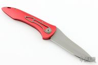 The Tactical Hybrid 4.25 auto by Tinives features a bead blasted spear point style blade. The handle is composed of textured red aluminum. This knife opens with authority. Excellent Condition. Comes with original box.