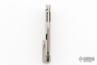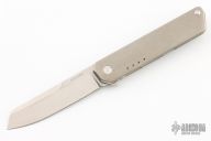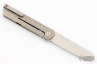 This iQ by Quiet Carry comes with a frame lock style locking mechanism and includes a stainless steel lock bar insert. The blade is a sheepsfoot style blade and you have a knife that excels with scoring and slicing tasks. Titanium scales, hardware, and stainless over travel stop. Comes with original box and card. Excellent condition.