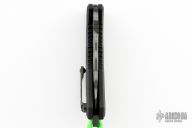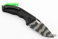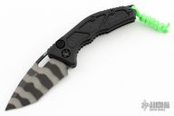 This Medusa by Heretic Knives features a commando tanto recurve blade with false top edge, notched thumbrest. The handle has a black aluminum frame with checkered push button, black backspacer and a tip up stainless steel clip with ceramic ball. Comes with original box. Has a couple light scuffs, excellent condition otherwise. #00080.