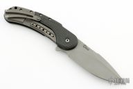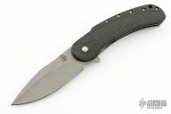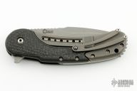 This Bodega by Begg Knives has a tumble finished stainless steel spear point blade with IKBS and notched thumb rest. Handle is black carbon fiber with stonewashed titanium lock bar and tumble finished, tip up clip with a ceramic ball. Zero blade play, excellent (early) lockup. Comes with zipper case. Has a couple light scuffs, otherwise excellent condition.