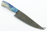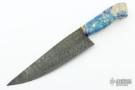 This BBQ Chef's Knife by Advansite Custom Knives features a Damascus blade (1095/15N20), .213" blade stock and 1.969" blade depth, full tang construction. The handle has dyed and stabilized maple burl scales. New from maker!