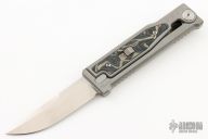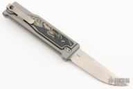 EXO Mini Gravity knife. drop point blade, titanium handle, burl micarta inlays. Comes with original box, and accessories. S/N 469 dated 06/2023. Includes the original box and papers. Excellent Condition.