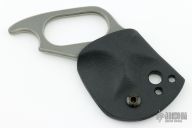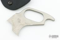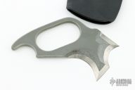 This knife by Warren Thomas features a satin finished titanium and grey G-10 laminate blade and handle, chisel ground, .232" blade stock and 1.874" blade depth. Comes with kydex sheath intended for neck carry. Excellent condition. The finger holes are 1.885" x .967"
