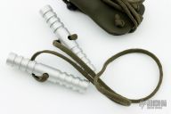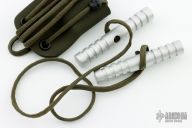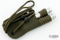 Garrotte with aluminum handles and green cord. Comes with a kydex neck sheath. Excellent condition.