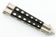 Balisong USA started manufacturing butterfly knives in the late 1970s, then changed its name to Pacific Cutlery in the early 1980s, before finally becoming Benchmade. The earlier knives featured a wide variety of custom blade designs (many of which were hand ground by master knifemaker Jody Samson, well known for making the swords in the movie Conan the Barbarian), as well as a number of exotic inlays for the handles (ivory, prehistoric ivory, scrimshawed ivory, mother-of-pearl, ebony, tropical woods, etc.)