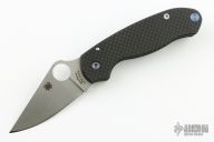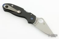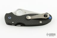 This Paramilitary 3 from Spyderco has a satin finished clip point blade with thumb hole and notched thumb rest. Handle is carbon fiber with stainless steel liners and an aftermarket titanium clip.  Includes a padded zippered case.  Excellent Condition.