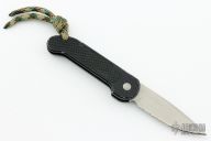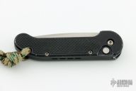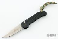 This Mini UDT by Microtech Knives features a stonewashed partially serrated blade. Dated 11/2013. Black aluminum frame with rubber inserts and lanyard hole. S/N 00490. Has some scratches, dings and wear, otherwise good condition. Blade looks unused.
