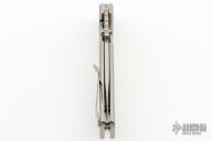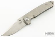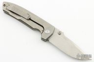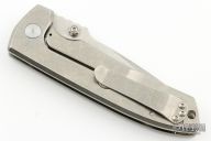 This Project VECP by Les George features a tumble finish CNC flat ground blade and a bead blasted titanium frame with matching tip up clip. Hinderer lock bar stabilizer. Phosphorus bronze washers. Smooth action. Nice blade seating, detent and lockup. Excellent condition. Comes with a nylon velcro case.