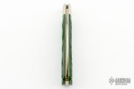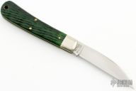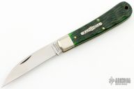 This Viper from Great Eastern Cutlery features a satin finished wharncliffe style blade with swedge and nail nick. The handle is comprised of pinched nickel silver bolsters and escutcheon and green jigged bone covers over brass liners and stainless steel backspring. Has Half-stop. Has a few light scratches, otherwise excellent condition. Comes with a black nylon sheath.