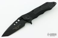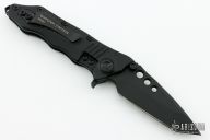 This Helix Nano flipper features a black tanto blade, dual thumbstuds, flipper, and notched thumbrest. The handle has a black G-10 frame, black aluminum backspacer and stainless tip up clip. Nice detent, lockup and blade seating. #0587 on clip and dated 09/2017. Includes original box and papers. Knife is in excellent condition.