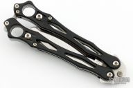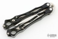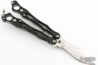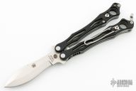 This Smallfly Balisong by Spyderco has a satin finished spear point blade with false top edge. The handle is black G10 over stainless steel liners and stainless steel paper-clip style pocket clip.  Has a couple light scratches, otherwise excellent condition. Comes with a zippered case.