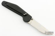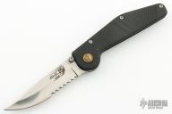 This Auto from GT Knives features a satin partially serrated blade. The handle is machined black anodized aluminum, tip down or up reversible clip. Has a couple scuffs, otherwise excellent condition.