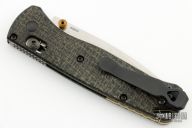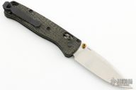 The 535-3 Bugout knife is built with a carbon fiber handle and a satin finished blade with a plain cutting edge.