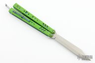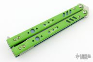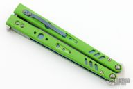 This BRS Replicant features a tumble finish drop point blade. The handle is comprised of green G-10 scales over anodized titanium liners and tumbled titanium backspacers. Stainless steel T latch included but not attached. Tip up 4-way reversible titanium clip. Comes with original box and papers. The item is in excellent condition.