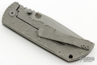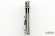 This MAC2 features a stonewashed drop point Magnacut blade with dual thumbstuds and a notched thumbrest.  The handle features an atomic jigged titanium frame with a matching tip up pocket clip. New condition. Comes with original box and papers.
