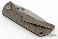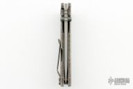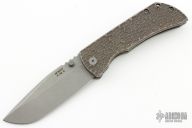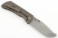 This MAC2 features a stonewashed drop point Magnacut blade with dual thumbstuds and a notched thumbrest.  The handle features an atomic bronze jigged titanium frame with a matching tip up pocket clip. New condition. Comes with original box and papers.