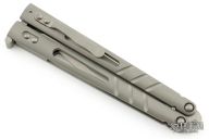 The Alpha Beast Infinity is a fine-tuned version of the original packed with next level quality, style, and performance. The blade is made from resilient CPM-S35VN stainless steel with a dark stonewashed finish and a crowned spine. It features rounded titanium handles that enhance overall grip and comfort. Comes complete with a removable contoured pocket clip for convenient carry.