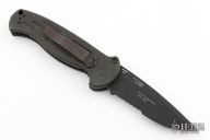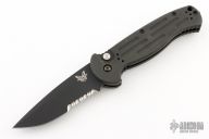 This AFO auto by Benchmade has a black partially serrated blade. Black anodized aluminum handle. Lanyard hole. Tip down pocket clip. First Production 198/500. Excellent Condition.