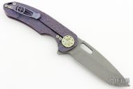This F3 Large by Curtiss Knives features a bead blast and stonewash finished Magnacut blade with notched thumbrest and flipper. The handle has an FJ-Mill and anodized titanium frame over notched titanium backspacer, titanium tip up clip. Smooth and fast opening using a Caged Bearing System. Nice blade seating, detent and lock up. Includes the original box, pivot tool, zippered case and COA dated 10-18-23. New from maker.