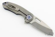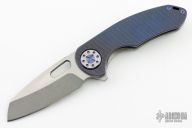 This F3 Medium by Curtiss Knives features a two-tone blade with notched thumbrest and flipper. The handle has a diamond Milled and anodized titanium frame over notched titanium backspacer, titanium tip up clip. Smooth and fast opening using a Caged Bearing System. Nice blade seating, detent and lock up.  Includes the original box, zippered case and COA dated 10-20-23. New from maker.