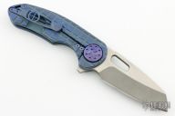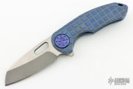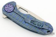 This F3 Medium by Curtiss Knives features a two-tone blade with notched thumbrest and flipper. The handle has a Frag Milled and bead blast finished titanium frame over notched titanium backspacer, titanium tip up clip. Smooth and fast opening using a Caged Bearing System. Nice blade seating, detent and lock up.  Includes the original box, zippered case and COA dated 10-26-23. New from maker.