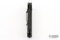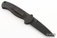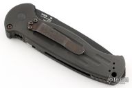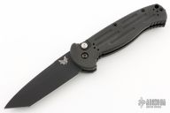 This 9052BK AFO II auto has a black tanto blade. Black anodized aluminum handle. Integrated safety system. Black stainless steel clip - up or down reversible, and lanyard hole. Comes with nylon sheath and the original box. Excellent condition.