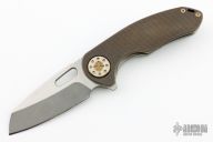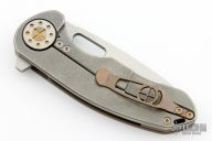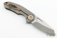 This F3 Medium by Curtiss Knives features a two-tone blade with notched thumbrest and flipper. The handle has a Diamond Milled and bead blast finished titanium frame over notched titanium backspacer, titanium tip up clip. Smooth and fast opening using a Caged Bearing System. Nice blade seating, detent and lock up.  Includes the original box, zippered case and COA dated 10-24-23. New from maker.