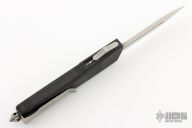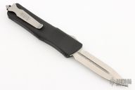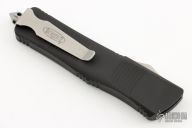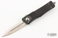 This Troodon by Microtech features a Satin finished double edged blade. Black aluminum handle with glass breaker and stainless steel clip. Dated 05/2010, S/N 07770. Comes with original box and papers. Excellent condition.