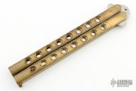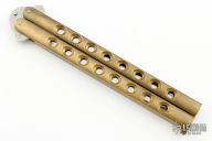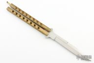 This Large Golden Dragon is a 1980's classic Taylor/Seto Balisong with brass handles. Has a satin finished blade with a false top edge. Has some light scratches and patina, otherwise good condition for its age.