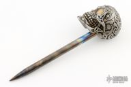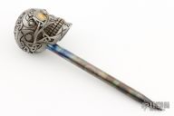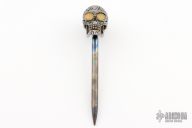 This spike by Mickey Yurco features a skull with glow in the dark eyes, flamed titanium spike. Excellent condition. Comes with a zippered case.