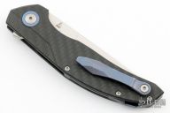 This knife by Viper Knives features a stonewashed drop point blade and flipper.   The handle has a carbon fiber frame with an anodized titanium backspacer and a tip-up pocket clip. Has a couple light spots on the blade, excellent condition otherwise.