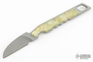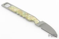 This Buddy by WKRMN features a bead blasted finished blade with .175" blade stock and .646" blade depth, full tang construction with Faux MOP scales. Excellent condition.