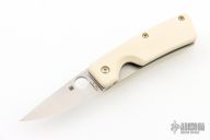 This Lil Nilakka by Spyderco features a satin finished blade with thumbhole. The handle has white G-10 scales, stainless steel liners, backspacer and tip up clip. #0822 of 1200 on blade.  Comes with a Spyderco zippered case and papers. Excellent condition.