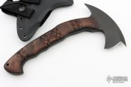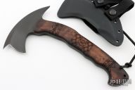 The WK RnD Axe Series is a collaborative design between Master Bladesmith Daniel Winkler and skilled Sayoc Kali martial arts trainer Rafael Kayanan. The handle design provides a standard grip position, as well as a secondary close quarter grip that was developed to emulate the feel of a handgun grip. The optional front spike (6 - 8 month delivery) is a valuable feature in combat usage.