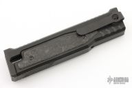 EXO-M Gravity knife. Tanto blade, black PVD titanium handle, marble carbon fiber inlays. Comes with original box, and accessories. S/N 064 dated 07/2023. Includes the original box and papers. New Condition.