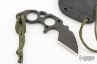 This Minnow 030 by Dave Anton features a black milled blade with skeletonized handle, .257" blade stock and 1.350" blade depth, full tang construction. Comes with a kydex neck sheath. Has some scuffs/scratches, otherwise good condition.